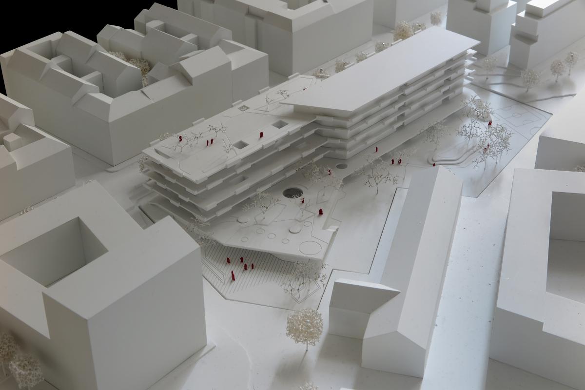 | 21 | Architektin Sne Veselinovic + ILF Consulting Engineers Austria, Wien Mitarbeiter: Büro Veselinovic: Arch. Mag. arch. Sne Veselinovic, DI Marceline Kohler, DI Simon Sellner, DI Jana Rose, DI Marion Lefebvre-Hecht; Büro ILF: DI (FH) Gerald Herndlhofer PMP, DI Karl Schenzel; vdx DI Michael Lisner (Schaubild), Scata Matta Modellbau Studio Yuriy Pryveda (Modellbau) Konsulenten: Simma Zimmermann Landschaftsarchitektinnen (Freianlagenplanung), Gmeiner Haferl Zivilingenieure (Tragwerksplanung), DI Erich Röhrer (Bauphysik und Brandschutz), ALTHERM Engineering (TA + ET), Snizek + Partner (Verkehrsplanung), Ronge & Partner (Küchenplanung), DI Schattovits (Kulturtechnik), Mag. art. Ingeborg Kumpfmüller (Kunst) |